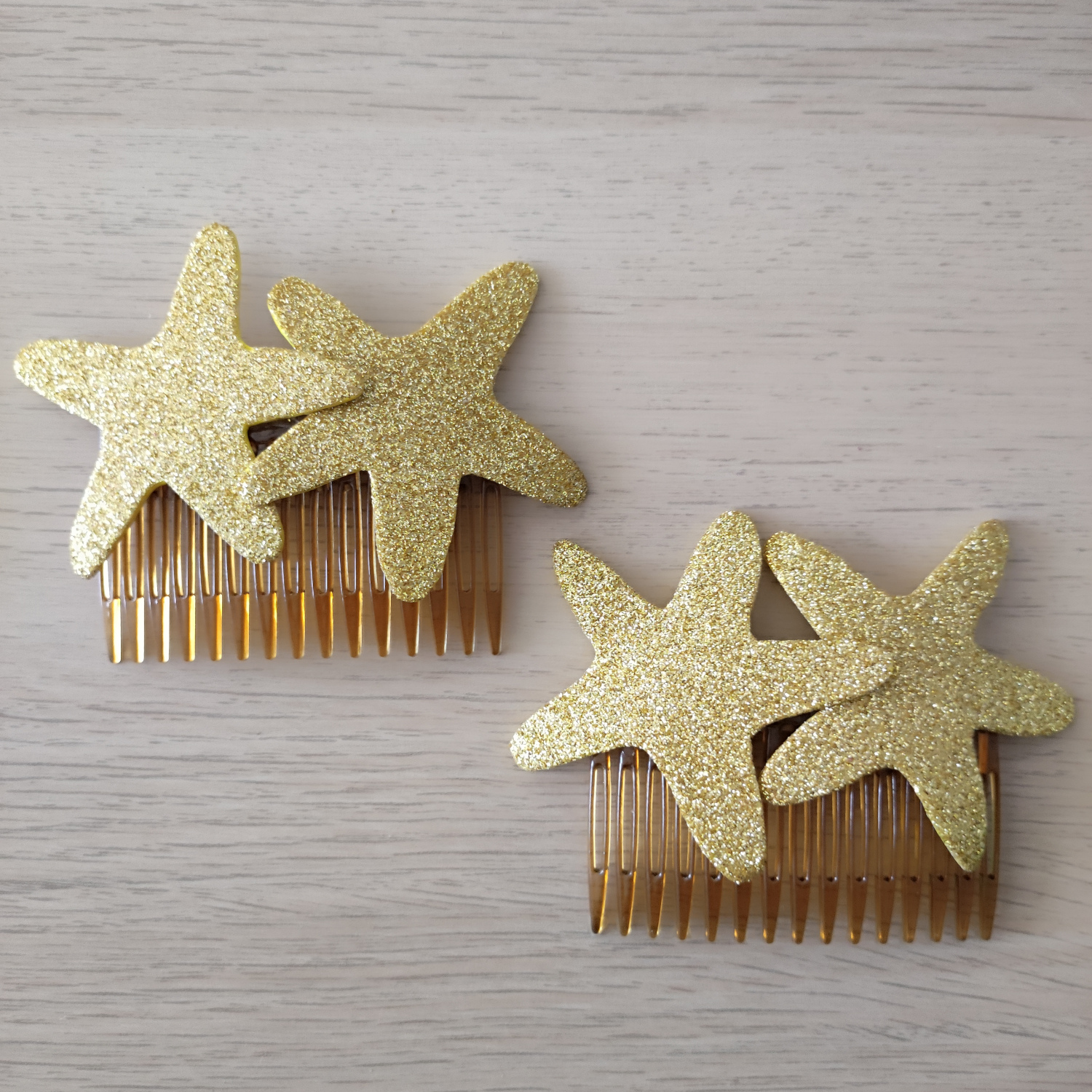 Φέρε τη μαγεία του βυθού στα μαλλιά σου με αυτό το εντυπωσιακό κοκαλάκι-χτενάκι! Διακοσμημένο με λαμπερούς αστερίες από γκλίτερ σε χρυσό, είναι το απόλυτο αξεσουάρ για καλοκαιρινές εμφανίσεις με παιχνιδιάρικη διάθεση.