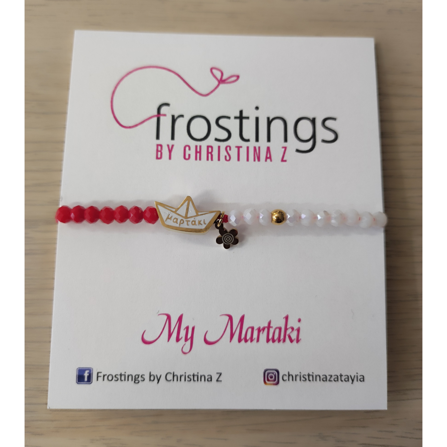 Μαρτάκι με λευκά και κόκκινα κρύσταλλα με ατσάλινο βαρκάκι και λουλουδάκι! Προσαρμόζεται στον καρπό!